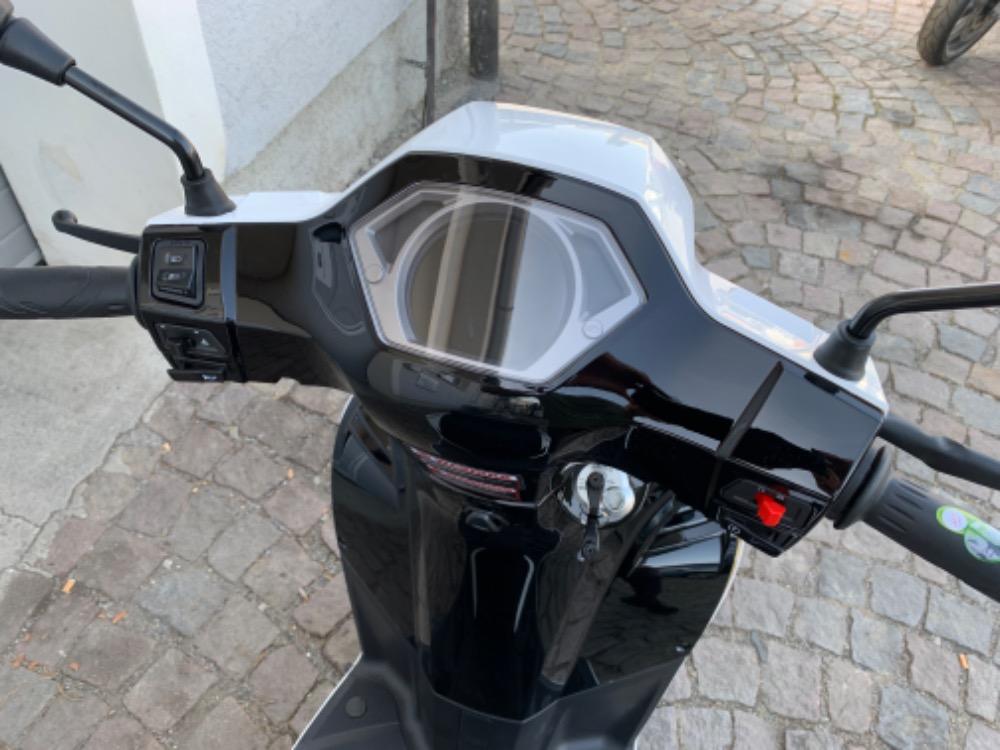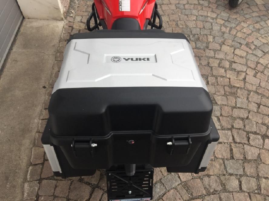 Skútr Yuki 125i YMAX je vybavený TFT displejem, systémem Start-Stop, alarmem, bezdrátovým klíčkem, mohutným nosičem pro kufr a přední jízdní HD kamerou.